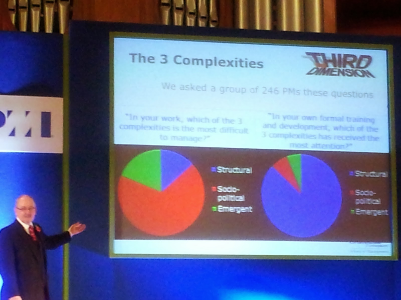 does not mean can deliver an we need to understand work first and then mach the right PM. Complicated is linear and predictable and easy to understand for experts. On the other hand complex is nonlinear and unpredictable and can be divided to 3 categories: structural, emergent (ex: technological & commercial maturity) and socio-political. 246 PMs have asked two questions: 1) Which complexity is the most difficult to manage? The answer: socio-political. 2) In your own formal training and development which has received the most attention? The answer: structural!