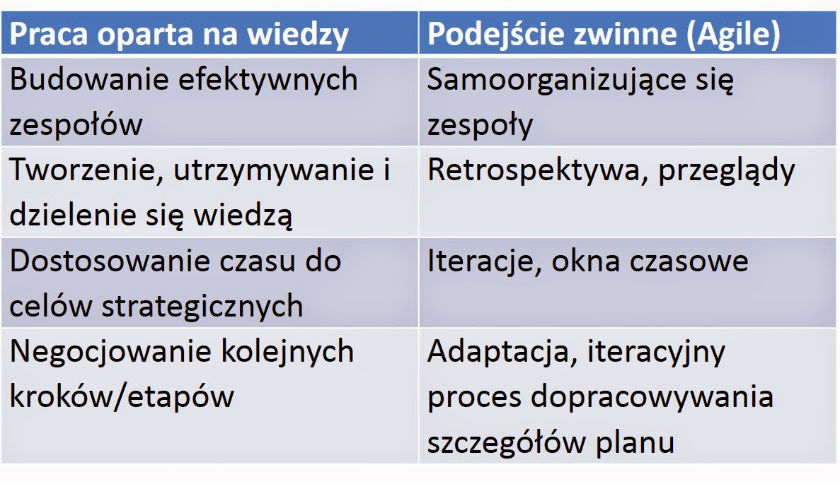 Dziś obserwujemy kolejną zmianę i era wiedzy ustępuję erze kreatywności i społeczeństwa sieciowego (informacyjnego), gdzie twórczy proces pracy, w którym uczestniczy pracownik-kreator, wymaga autonomii i swobody działania. Dynamicznie zmieniające się otoczenie, takie jak rozwój technologii, rosnące wymagania klienta, konkurencja oraz wzrost znaczenia innowacji, który wpływa na złożoność i ryzykowność przedsięwzięć, wymuszają na organizacjach większej elastyczności i efektywności działania. Dziś liczy się jak szybko tworzymy nowe możliwości i kreujemy nowe pomysły oraz jak szybko dostarczamy nową wartość dla klienta. Przetrwają tylko te organizacje, które w obliczu wyzwań i zmian będą potrafiły dostosować się do nowej sytuacji rynkowej. Nowa sytuacja wymusza nowy sposób myślenia, dlatego też podejścia zwinne (Agile) zyskują na znaczeniu. Zwinność dotyka wszystkich obszarów organizacji, w tym również, a może szczególnie, praktyk zarządzania ludźmi.