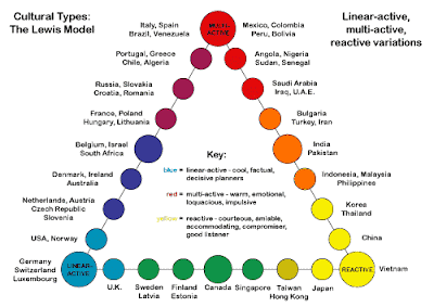 - multi-active – dialogue oriented, warm, emotional, impulsive, relationship-oriented