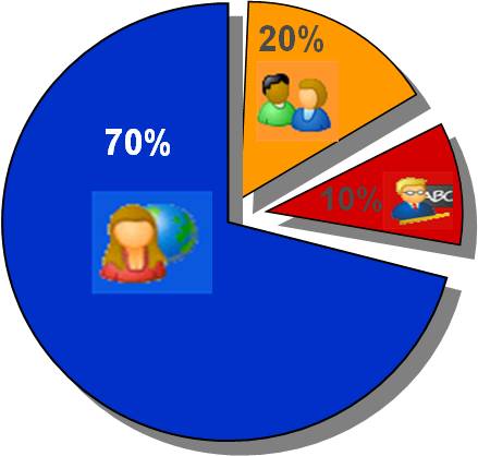 New Year, new plans, new development goals. My dream map is almost ready, so this week I decided to devote to planning my development – need to help my dreams come true. For the last 6 years, actually since I joined Thomson Reuters I split my development actions into three categories: 1) on job; 2) from others; 3) formal learning and use 70:20:10 approach to my learning and development.  In this article I will explain the 70:20:10 approach and will share some tips development goals settings.